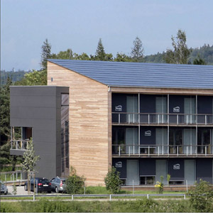 The entire roof slope facing due south with an inclination of 12° is covered with photovoltaic modules. The modules of anthracite, form a discontinuous roofing, with tiles which overlap. Thus, the cover does not require an additional layer for the watertightness. Market Support Office is the first office in Switzerland to really achieve a zero energy balance.
