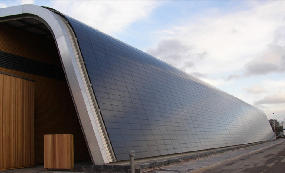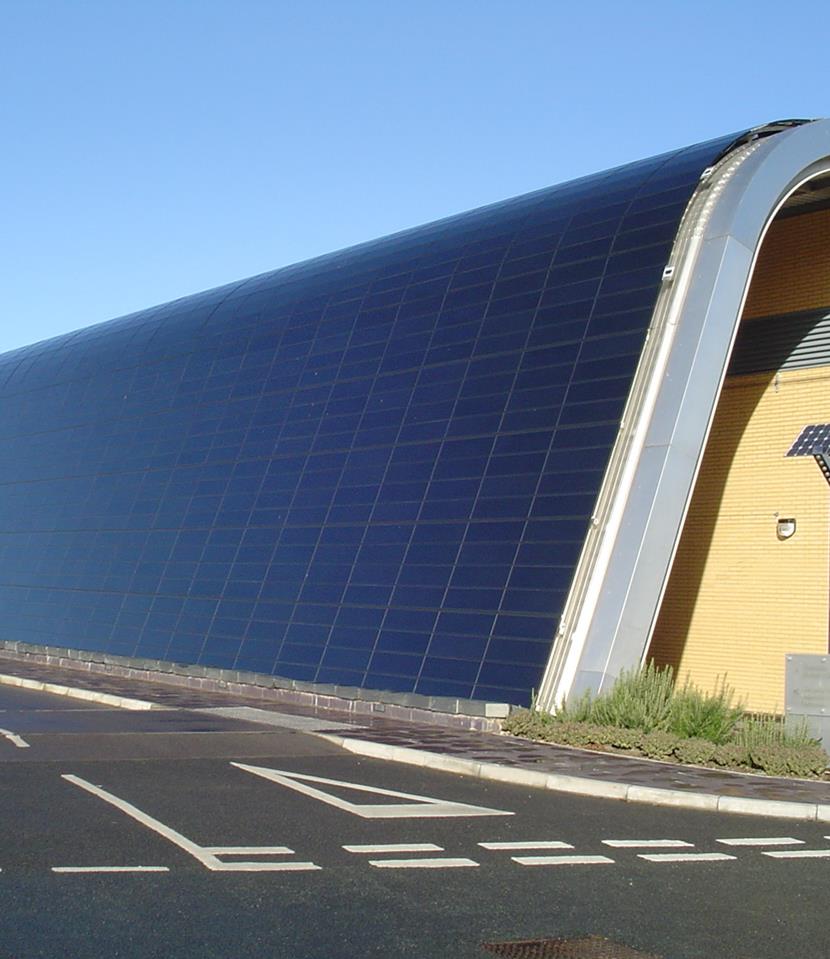 The building Optic Technicum has the largest PV plant in Europe with CIS technology and is the first application of this type of cells in the United Kingdom. The PV has been an integral part of the project from the initial stage and characterizes the morphology of the building envelope. The entire south facade is covered with modules inclined at 70° with respect to the horizontal.